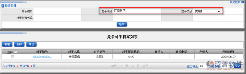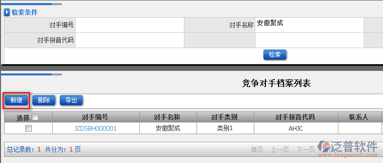 這一節(jié)我們主要講解創(chuàng)建好的競爭對手檔案存放。在【競爭對手檔案列表】中可以通過系統(tǒng)提供的檢索條件進(jìn)行模糊查詢。其中檢索條件包括:對手編號、對手名稱、對手類別、對手拼音代碼等相關(guān)條件進(jìn)行檢索。