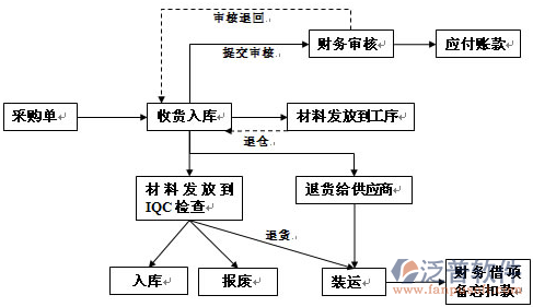與采購(gòu)管理系統(tǒng)的關(guān)系:采購(gòu)業(yè)務(wù)下單在供應(yīng)商送貨進(jìn)行采購(gòu)預(yù)收并IQC質(zhì)檢合格后,對(duì)所收物料進(jìn)行采購(gòu)驗(yàn)收入庫(kù)處理;對(duì)判定不合格的物料或在生產(chǎn)過(guò)程中發(fā)現(xiàn)不合格的物料進(jìn)行采購(gòu)?fù)素浱幚怼?/p>