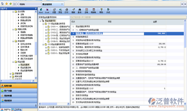 現(xiàn)金流量表:查詢企業(yè)財務(wù)當(dāng)期的現(xiàn)金流量明細(xì)表。