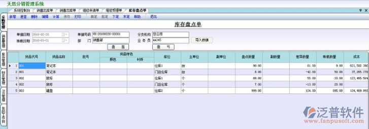 軟件從庫(kù)存物品的出入庫(kù)操作、庫(kù)存調(diào)整調(diào)撥業(yè)務(wù)、盤點(diǎn)業(yè)務(wù)及盈虧差異處理等過程進(jìn)行管理,天思erp系統(tǒng)支持多倉(cāng)庫(kù)、貨位、批次、包裝單位等管理方式,支持固定、變動(dòng)成本核算方式和多種計(jì)算方法。