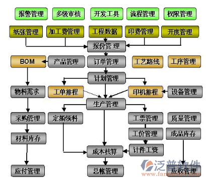 印刷行業(yè)與其他行業(yè)相比有其自身特點。如:生產(chǎn)方式特殊,必需按施工單組織生產(chǎn),印刷出的成品只能專屬于某客戶,不能更換和處理;產(chǎn)品種類繁多,定貨量無論大小,都要分別對待,排產(chǎn)、核算工作量大;客戶個性化要求高,產(chǎn)品要求時效性高,若不能按期交貨可能使產(chǎn)品報廢,給企業(yè)帶來巨大損失;原材料成本比重高,這就要求加強對原材料的采購管理,對供應(yīng)商進行價格和質(zhì)量認證;各環(huán)節(jié)相互制約性強等。