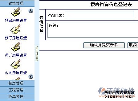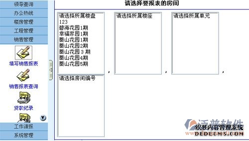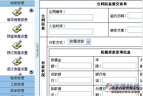 此管理系統(tǒng)需要授權(quán)用戶才能管理此欄目。銷售管理包括客戶服務(wù)查詢、填寫銷售報(bào)表、預(yù)留房屋設(shè)置、退訂房屋設(shè)置、合同房屋設(shè)置貸款記錄、客戶登記表、銷售控制表等功能,自動(dòng)匯總查詢,方便領(lǐng)導(dǎo)查詢管理,了解公司工作進(jìn)度,及時(shí)做出方案,從而提高工作效率。