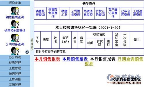 本查詢系統(tǒng)顯示本日樓房銷售狀況,及時(shí)了解樓房的銷售情況。