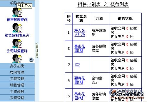 銷售控制表查詢系統(tǒng)顯示樓盤列表,可以看見簽約樓房數(shù)量和剩余樓房數(shù)量。及時(shí)了解樓房售出情況。