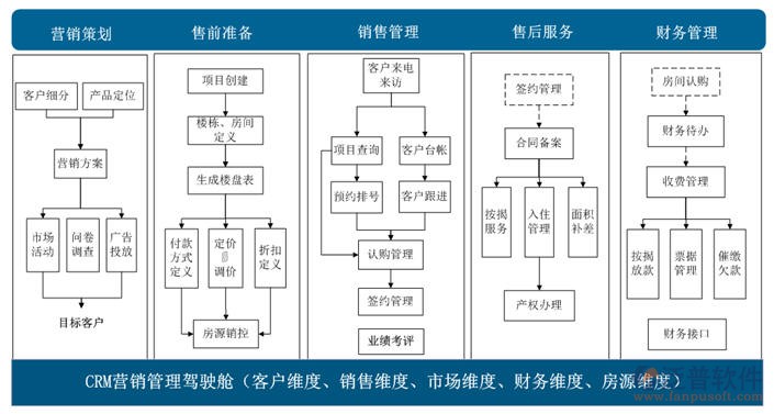 以營銷業(yè)務為中心,動態(tài)擴展:經紀公司管理模塊、房地產銷售專用工具、IPAD應用、會員管理等房地產營銷全局支撐軟件環(huán)境。