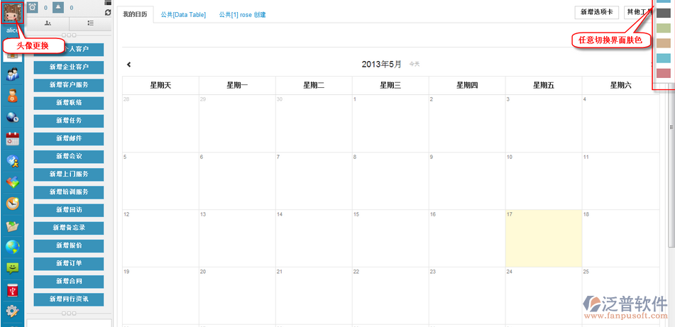16:增加活動(dòng)管理—— 企業(yè)可自定義活動(dòng)類型,在一個(gè)模塊記錄與客戶有關(guān)的所有活動(dòng)往來(lái),同時(shí)配有活動(dòng)的提醒、活動(dòng)的轉(zhuǎn)交、領(lǐng)導(dǎo)評(píng)價(jià)、活動(dòng)關(guān)聯(lián)等輔助功能。