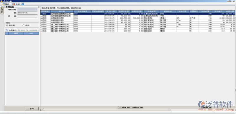 此模塊的主要作用是對(duì)合同信息進(jìn)行統(tǒng)計(jì)管理,對(duì)比顯示合同與計(jì)劃與實(shí)際入庫(kù)中的數(shù)量、金額、單價(jià)情況。