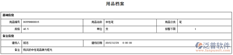 用品檔案管理是集辦公用品管理系統(tǒng)為一體的軟件,是行政管理人員的好幫手。用品管理可以將所有的辦公用品在此處進行一個檔案的建立,方便后期再領用、入庫做好前期準備。用品檔案主要屬性包括:用品名稱、用品分類、報警下限、單位、規(guī)格等相關信息。