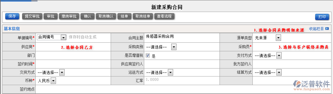 如何在泛普軟件ERP系統(tǒng)采購管理中新建采購合同?