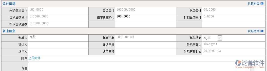 (2)合計(jì)信息和備注信息是自動(dòng)生成無需填寫