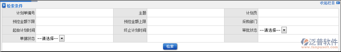 (4)泛普軟件ERP系統(tǒng)采購管理也支持根據(jù)“預(yù)控金額下限”“預(yù)控金額上限”查詢,和采購計(jì)劃發(fā)生時(shí)間段來查詢