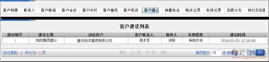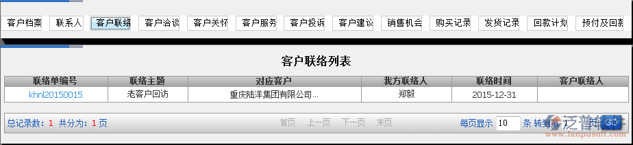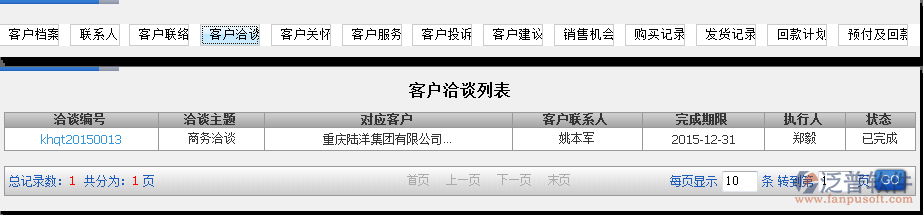 如何在泛普軟件ERP系統(tǒng)的CRM系統(tǒng)中查詢與客戶相關(guān)的所有信息?如與客戶的檔案信息、聯(lián)系人、客戶聯(lián)絡(luò)、客戶洽談、客戶關(guān)懷、客戶服務(wù)、客戶投訴、客戶建議、銷售機(jī)會、購買記錄、發(fā)貨記錄、回款計劃、預(yù)付及回款。