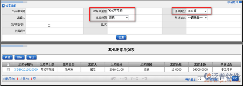 1、點擊【其他出庫單列表】進入列表顯示頁,如圖: