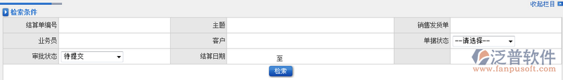 2、通過上圖中的檢索條件,用戶可以快速查找到對(duì)應(yīng)的委托代銷結(jié)算單信息。ERP系統(tǒng)提供的檢索條件可以為多個(gè)條件或者單個(gè)條件進(jìn)行模糊查詢。如圖: