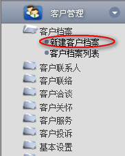 1.點(diǎn)擊辦公模式→客戶管理→客戶檔案→新建客戶檔案,進(jìn)入“新建客戶檔案”窗口
