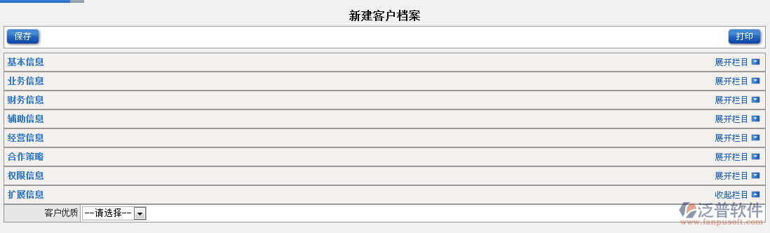 2.客戶檔案需要填寫一下信息(基本信息、業(yè)務(wù)信息 、財(cái)務(wù)信息 、輔助信息 、經(jīng)營(yíng)信息 、合作策略 、權(quán)限信息 、擴(kuò)展信息 )