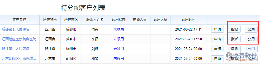 1、系統(tǒng)中當(dāng)前將所有未分配未指派的客戶信息都在當(dāng)前表中顯示,在此銷售部門的領(lǐng)導(dǎo)可以清楚了解未分配客戶的信息,也能避免銷售人員離職導(dǎo)致客戶信息流失