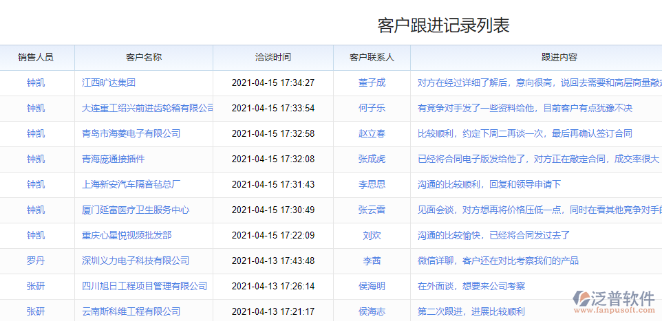 客戶跟進(jìn)記錄列表
