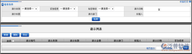 上一節(jié)我們講到如何創(chuàng)建新的請(qǐng)示,這節(jié)我們主要講解【請(qǐng)示列表】。請(qǐng)示列表主要對(duì)發(fā)起的所有請(qǐng)示進(jìn)行一個(gè)檢索查詢操作。用戶可以通過:請(qǐng)示類別、緊急程度、請(qǐng)示標(biāo)題、請(qǐng)示部門等相關(guān)條件進(jìn)行模糊檢索查詢。