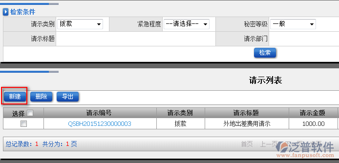 3、在查詢到的請(qǐng)示頁面,用戶可點(diǎn)擊【新建】進(jìn)入新建請(qǐng)示頁面