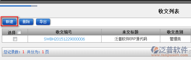 4、在【收文列表】頁(yè)面中系統(tǒng)關(guān)聯(lián)【新建收文】模塊,點(diǎn)擊【新增】即可進(jìn)入收文新增頁(yè)面。如圖: