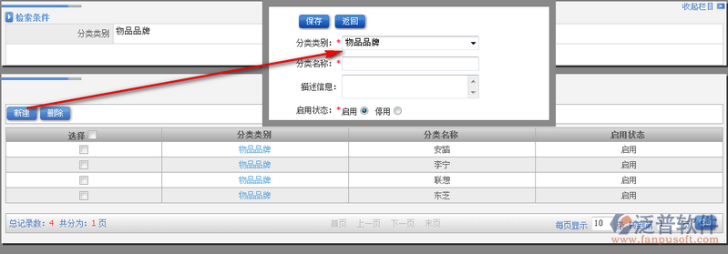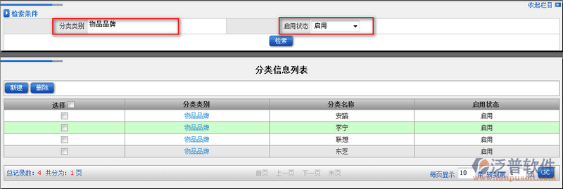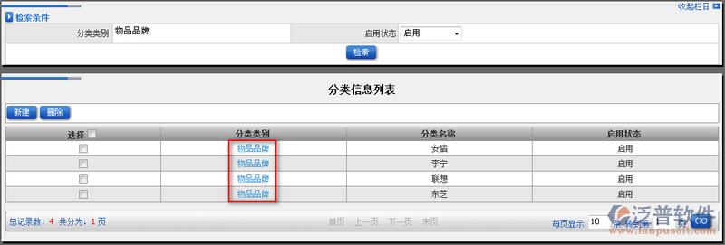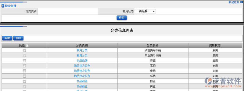 2、ERP系統(tǒng)為企業(yè)提供模糊查詢功能,通過上圖中的檢索條件查詢出自己想要的分類。如圖: