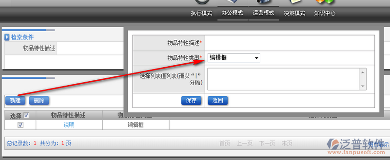 2、點(diǎn)擊【新建】進(jìn)入物品特性的新增頁面。如圖: