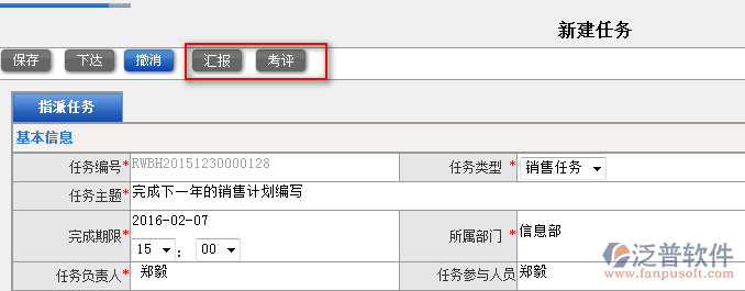 5、相應(yīng)的人員完成后,即可對下達的任務(wù)進行匯報、考評處理。