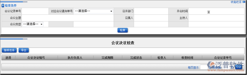 會議決議核查主要對會議討論的結(jié)果進行查詢操作。會議中討論出的結(jié)果是否執(zhí)行到位。如果還未執(zhí)行,即可通過【會議決議核查】界面對其進行指派任務(wù)操作。會議決議核查可以通過以下屬性進行模糊查看,如:會議記錄單號、對應(yīng)會議通知單號、召開部門等相關(guān)信息進行模糊查看。