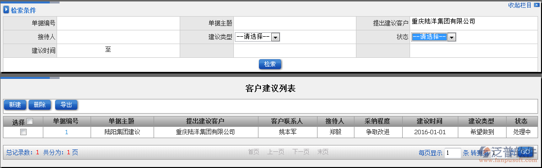 1.點(diǎn)擊辦公模式→客戶管理→客戶建議→客戶建議列表,進(jìn)入“客戶建議列表”窗口: