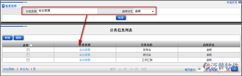 2、通過(guò)檢索條件用戶(hù)可以快速查詢(xún)到對(duì)應(yīng)的分類(lèi)類(lèi)別。如圖: