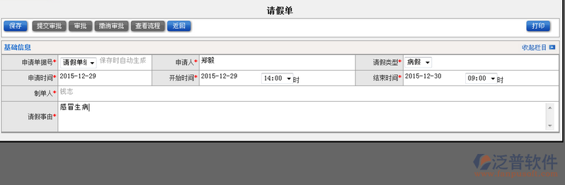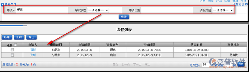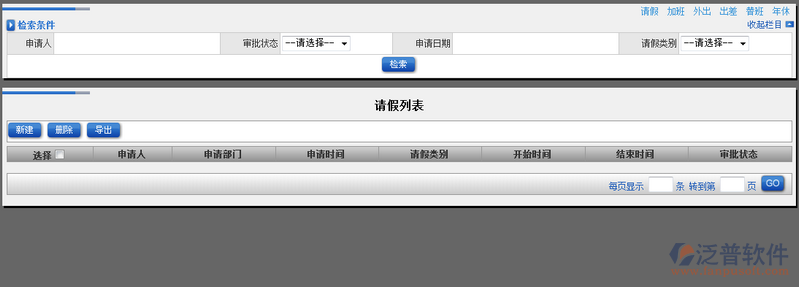 4、請假申請可以通過系統(tǒng)提供的檢索條件進(jìn)行模糊查詢,方便快捷操作。