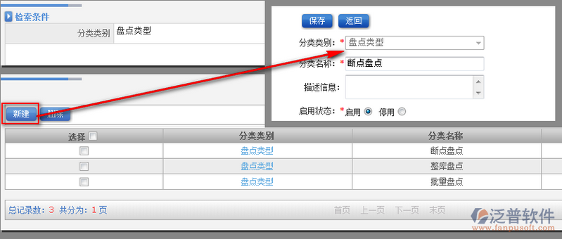3、通過分類信息列表中的【新建】功能,進(jìn)入分類信息新增。如圖: