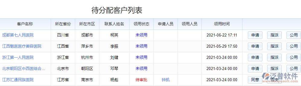 3、銷售人員可以通過系統(tǒng)中的客戶新增將客戶信息進行錄入,同時對客戶進行申請領(lǐng)用的申請,如果銷售經(jīng)理審核通過那么當(dāng)前客戶就是該銷售人員的,其他的銷售人員也可以對未領(lǐng)用的客戶進行申請,這樣避免一個銷售人員手上有很多的客戶,造成其他的銷售人員沒有機會,同時也能透明公開的對客戶跟進進行管理