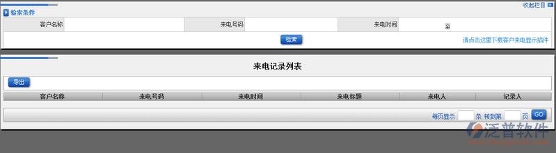 ERP系統(tǒng)中的客戶來電管理模塊需要集成其它的軟件使用??蛻魜黼姽芾砜梢酝ㄟ^:客戶名稱、來電號碼以及來電時間進(jìn)行模糊查詢