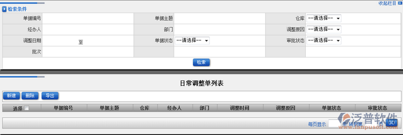 1、點(diǎn)擊【日常調(diào)整單列表】進(jìn)入主界面。如圖: