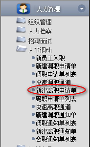 1.點(diǎn)擊辦公模式→行政管理→人事調(diào)動(dòng)→新建離職申請單,進(jìn)入“新建離職申請單”窗口: