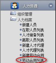 點擊辦公模式→行政管理→人力檔案→勞動合同列表,進入“勞動合同列表”窗口: