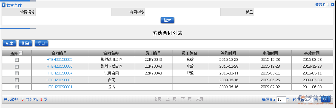 如何在泛普軟件ERP系統(tǒng)中新建勞動合同?