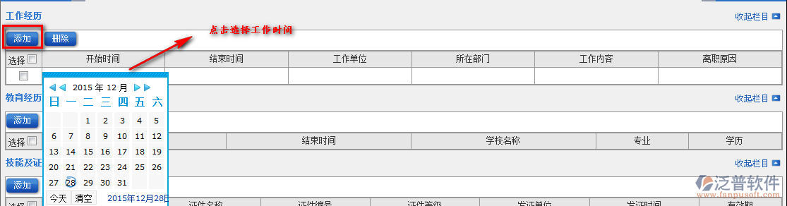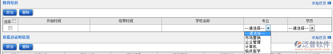 4.添加“技能及證照信息”