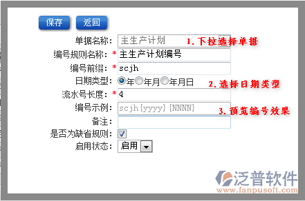 如何在泛普軟件ERP系統(tǒng)生產(chǎn)管理中設(shè)置生產(chǎn)管理系統(tǒng)模塊的編號(hào)?