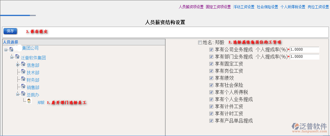 2.人員薪資項設置(指該員工在公司享有哪些工資項)