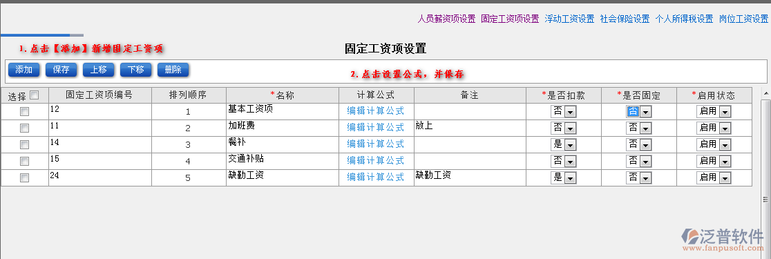 如何在泛普軟件ERP軟件中進行薪酬管理?首先應該設置工資項