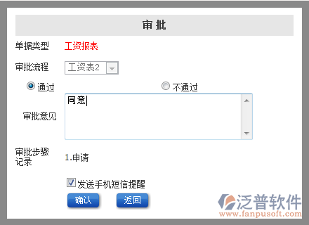 4.工資報(bào)表流程審批,點(diǎn)擊【審批】按鈕,審核后點(diǎn)擊【確認(rèn)】