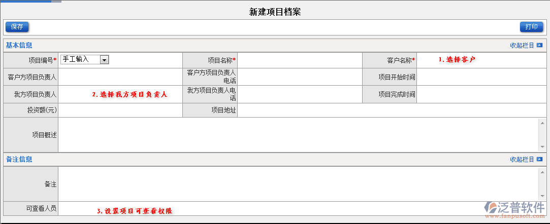 (1)填寫項(xiàng)目編號、項(xiàng)目名稱,選擇所屬客戶。