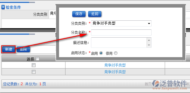 3、點(diǎn)擊分類信息列表中的【新建】即可進(jìn)入分類信息新增頁(yè)面,如圖: