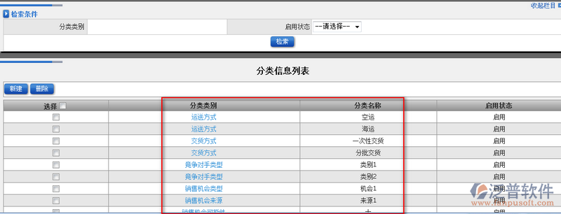 分類屬性設(shè)置主要對(duì)銷售類的所有類別進(jìn)行分類管理, 此處的分類屬性設(shè)置可以將所有關(guān)于銷售類的都放在此處進(jìn)行統(tǒng)一分配管理。同時(shí)分類屬性設(shè)置提供檢索功能,方便用戶快速查找自己想要的數(shù)據(jù)。模糊查詢可以按照:分類類別、啟用狀態(tài)進(jìn)行操作。