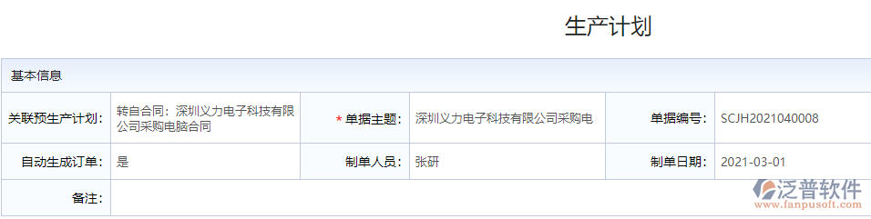 (1)通過系統(tǒng)的生產(chǎn)計(jì)劃功能,在開工之前制定詳細(xì)的生產(chǎn)計(jì)劃,包括需要生產(chǎn)的產(chǎn)品、工期、交貨期、負(fù)責(zé)人等等,利于企業(yè)標(biāo)準(zhǔn)化管理。