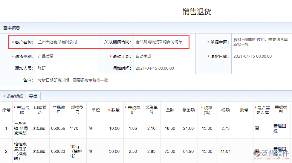 1、系統(tǒng)中在發(fā)生銷售退貨業(yè)務(wù)的時(shí)候,會(huì)將客戶與客戶簽訂的合同進(jìn)行相應(yīng)關(guān)聯(lián),這樣后期在查看退貨業(yè)務(wù)的時(shí)候,也能清楚是哪個(gè)客戶的合同進(jìn)行退貨,并形成相應(yīng)的依據(jù)
