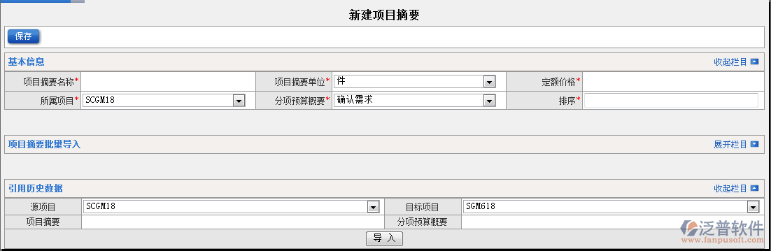 2.填寫項目摘要信息【保存】